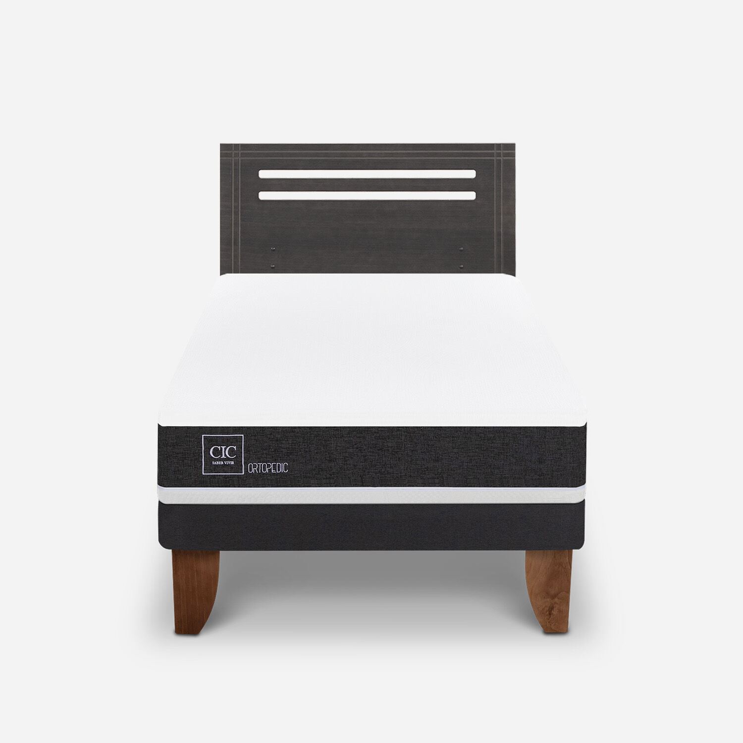Cama Europea Cic 1.5 Plazas Ortopedic Respaldo Munich Gris